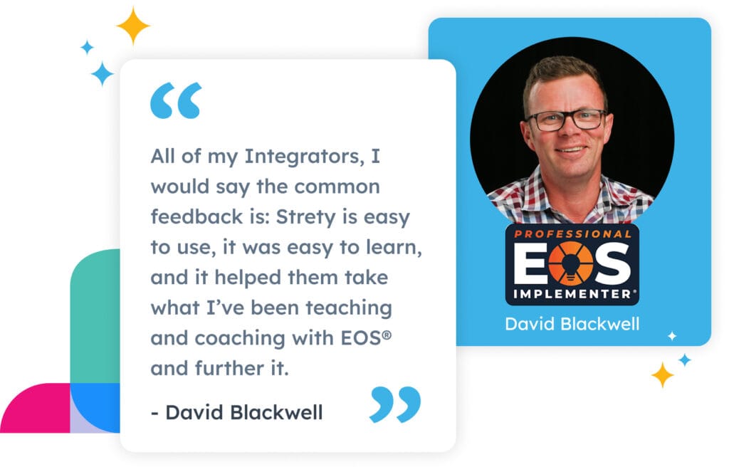As of January 2025, Strety is officially licensed by EOS Worldwide. This also means we’re officially ready to partner with you, an EOSI. Reach out to us to get more details and set up your clients today on the best EOS platform in the ecosystem.